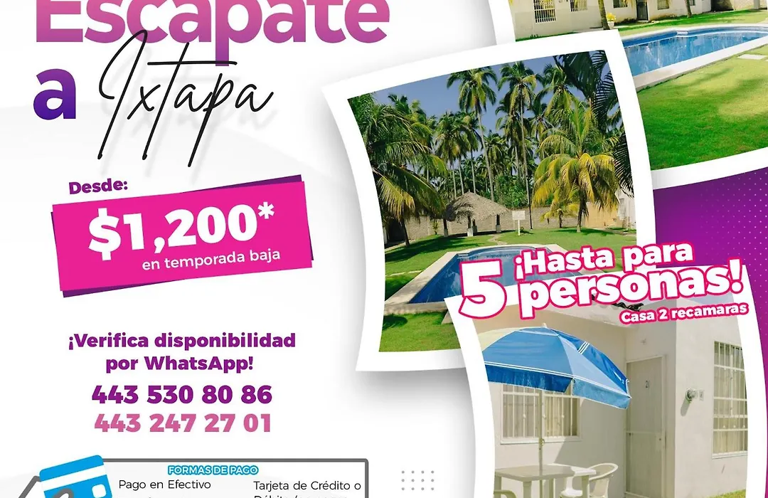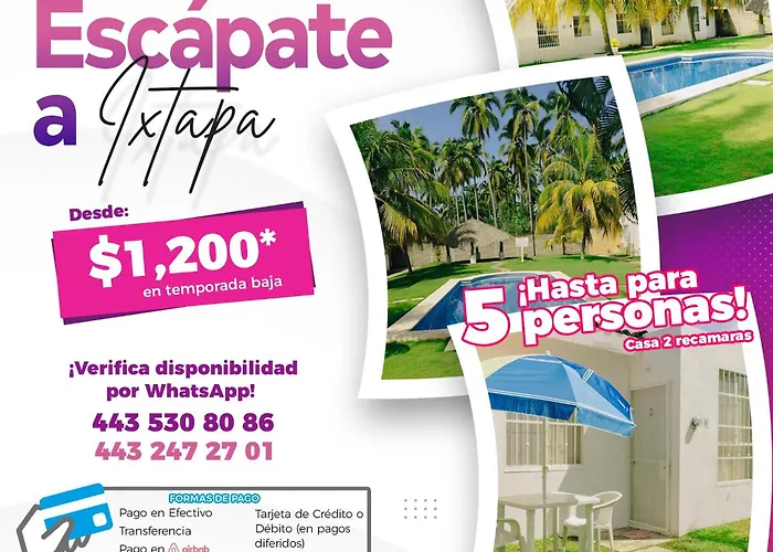 La casa de vacaciones se encuentra a unos 10 minutos en coche de la Marina Ixtapa. Esta villa se encuentra a 3 km de lugares de interés natural como la Playa Quieta. La Casa de 2 habitaciones con alberca se encuentra a unos 15 minutos en coche de la Playa Coral.